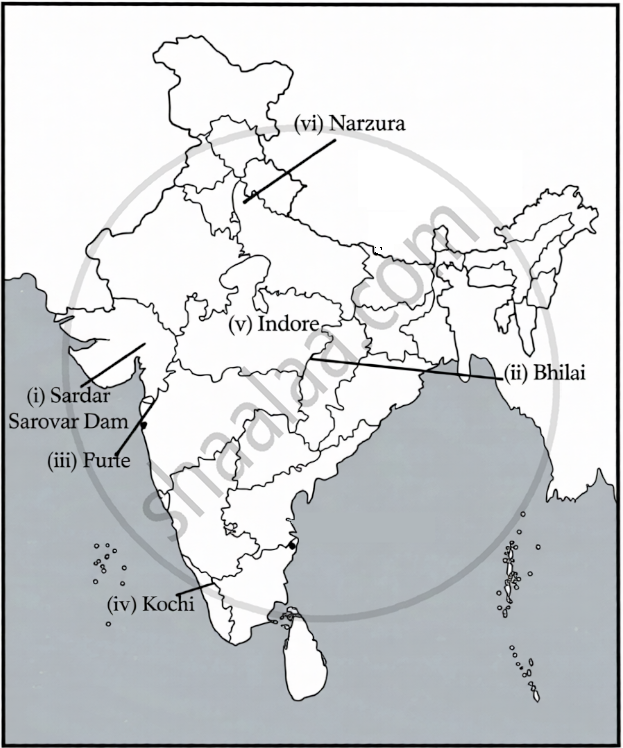 Locate and label any four of the following with appropriate symbols on the same given political outline map of India.