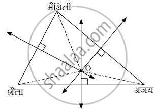 मैथिली, शैला तथा अजय तीनों एक ही शहर केअलग-अलग स्थानों पर रहते हैं। उनके घरों सेसमान दूरी पर खिलौनों की एक दुकान है। इसेआकृति की सहायता से द्शनि के लिए कौन सीभूमितीय रचना का उपयोग करोगे? तत्संबंधी स्पष्टीकरण दो।