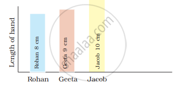 Rohan, Jacob and Geeta also measured their hands. They stuck their strips as shown.