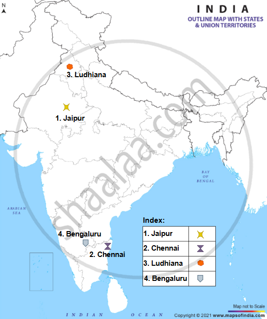 Mark and label the following on an outline map of India:
