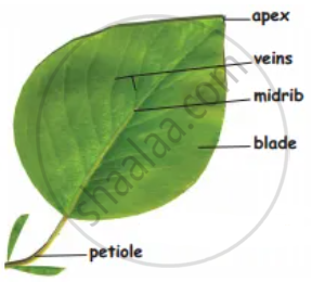 Mark any four parts and describe the parts of a leaf.