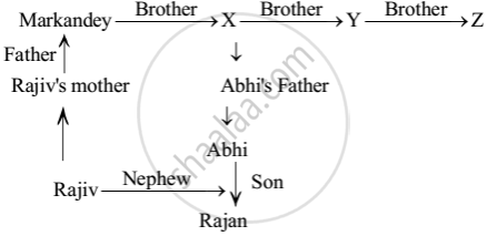 Markandey is Rajiv's mother's father. Markandey has three brothers. One of them has grandson Abhi. Rajan is son of Abhi. Rajan is related to Rajiv as