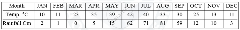 Study the climatic data given below and answer the questions that follow: