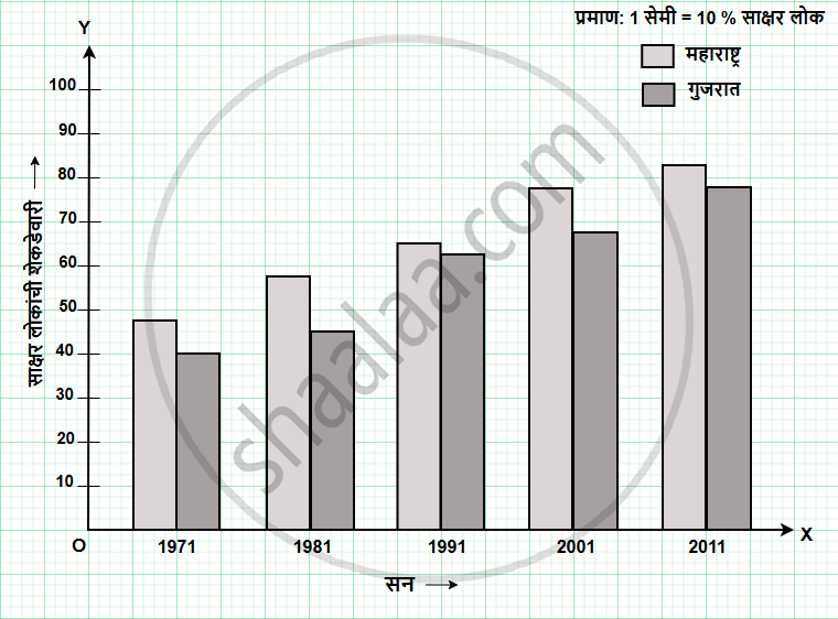 महाराष्ट्र व गुजरात राज्यांतील साक्षर लोकांचे प्रमाण शेकडेवारीमध्ये दिलेले आहे. त्यावरून जोडस्तंभालेख काढा.