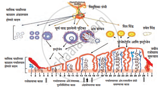 (पितपिंडकारी संप्रेरक, गर्भाशयाचे अंतःस्तर, पुटिका ग्रंथी संप्रेरक, इस्ट्रोजेन, प्रोजेस्टेरोन, पितपिंड)