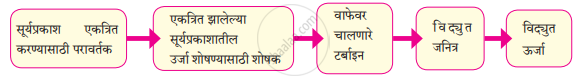 सौर औष्णिक विद्युत केंद्रासाठी ऊर्जा रूपांतरण दर्शविणारी.
