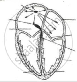 The diagram given alongside represents the human heart in one phase of its activity. Study the same and then answer the question that follow: