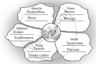 Name two words in each petal that you see in a garden.