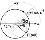 x - अक्ष पर `x = sqrt3/2` cm बिंदु चिन्हित करके इस बिंदु से x - अक्ष पर लांब रेखा खींची जो वृत्त को x - अक्ष के निचे की ओर बिंदु P पर काटती है। बिंदु P कण की प्रारंभिक स्थिती होगी।