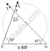∆EFG में, l(EG) = 6 सेमी, m∠F = 65°, m∠G = 45°