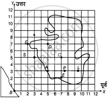 (iii) कौन-सा बिंदु जल के अंदर है - (2, 7) या (7, 2)? इनमें से मानचित्र पर वह बिंदु अंकित कीजिए जो जल में है। इसे E से नामांकित कीजिए।