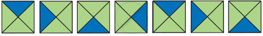 नियम - नीला त्रिभुज ऊपर, फिर बाएँ, फिर नीचे और फिर दाएँ दिखाई देता है।