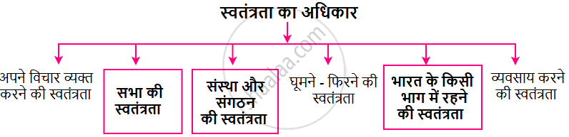 निम्न संकल्पना चित्र पूर्ण करो: स्वतंत्रता का अधिकार, अपने विचार व्यक्त करने की स्वतंत्रता, घूमने - फिरने की स्वतंत्रता, व्यवसाय करने की स्वतंत्रता - History and Civics [इतिहास और नागरिक शास्त्र]