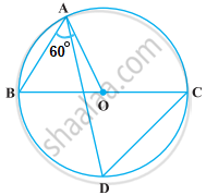 निम्नलिखित आकृति में, BC वृत्त का व्यास है तथा ∠BAO = 60° है। तब, ∠ADC बराबर है