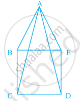 आकृति में, BCDE एक वर्ग है तथा बिंदु A को शीर्ष B, C, D और E से मिलाने पर एक त्रिविमीय 3D आकार बनाया गया हैं। इस त्रिविमीय आकार का नाम लिखिए तथा इसके (i) शीर्ष, (ii) किनारे और (iii) फलक भी लिखिए।