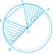 निम्नलिखित आकृति में O एक वृत्त का केंद्र है। त्रिज्याखंड OAC और OPB को छायांकित कीजिए।