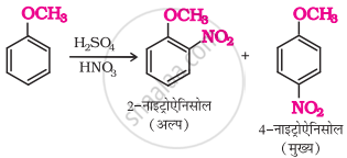 ऐनिसोल, सांद्र H2SO4 और सांद्र HNO3 के मिश्रण के साथ अभिक्रिया द्वारा ऑर्थो और पैरा नाइट्रोएनिसोल का मिश्रण देता है।
