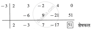 ∴ भागफल = 2x3 − 3x2 + 7x − 17 और शेषफल = 51