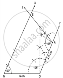 - O पर OY खींचिए ∠MOY = 105° बनाइए।
