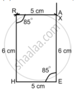 - H को केंद्र मानकर और 6 cm त्रिज्या लेकर दूसरी चाप लगाइए जो पहली चाप को R पर काटती है।