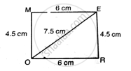 - R को केंद्र मानकर तथा 4.5 cm त्रिज्या लेकर दूसरी चाप लगाइए जो पहली चाप को E पर काटती है।