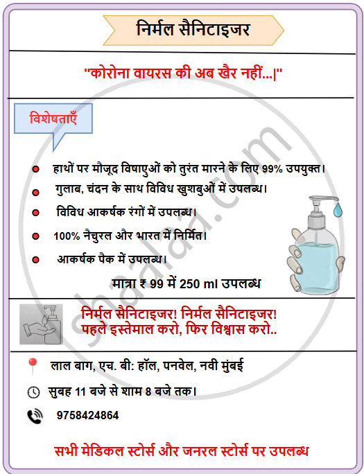 निम्नलिखित जानकारी के आधार पर विज्ञापन तैयार कीजिए :
