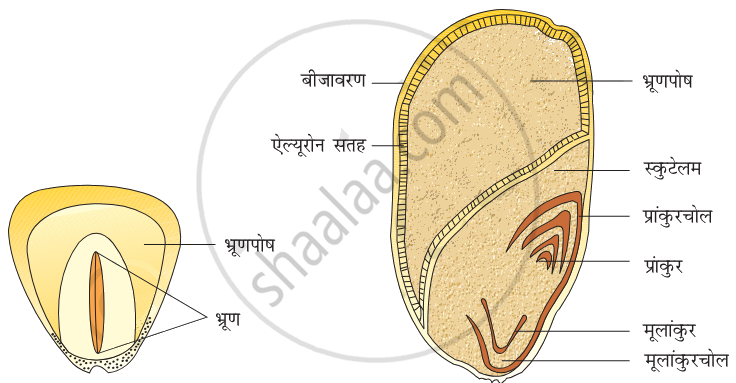 मक्का (एकबीजपत्री) के बीज की सरंचना |