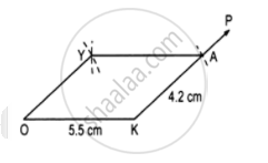 एक समांतर चतुर्भुज OKAY जहाँ OK = 5.5 cm और KA = 4.2 cm है।