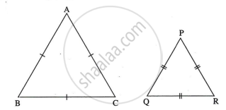 दत्त : दो त्रिभुज समबाहु त्रिभुज हैं अर्थात ΔABC तथा ΔPQR समबाहु त्रिभुज हैं।