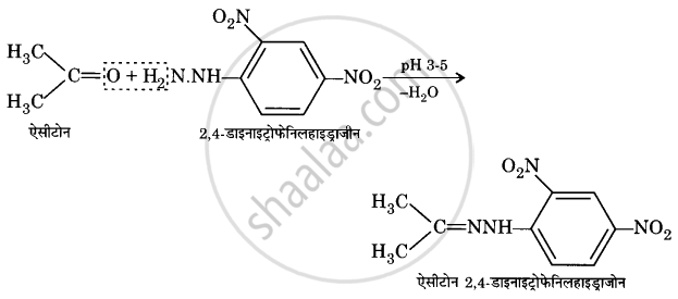 जब ऐल्डिहाइड अथवा कीटोन दुर्बल अम्लीय माध्यम में 2, 4-डाइनाइट्रोफेनिलहाइड्राजीन के साथ अभिक्रिया करते हैं तो 2, 4-डाइनाइट्रोफेनिलहाइड्रोजोन (2, 4-DNP व्युत्पन्न) उत्पन्न होते हैं।