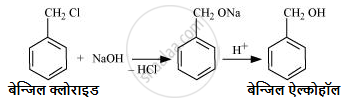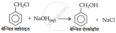 \[\ce{{बेन्जिल क्लोराइड} → {बेन्जिल ऐल्कोहॉल}}\]