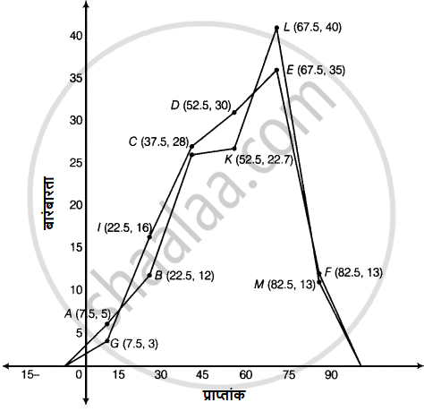 इन दोनों अनुभागों के विद्यार्थियों के प्राप्तांकों को एक ही आलेख कागज पर दो बारंबारता बहुभुजों से निरूपित कीजिए। आप क्या देखते हैं?
