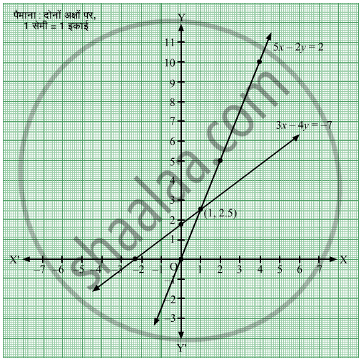 ∴ दिए गए युगपत समीकरण का हल (x, y) = (1, 2.5) अथवा (x, y) = `(1, 5/2)` है।