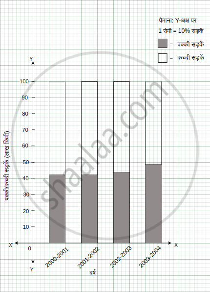 निम्नसारिणी में भारत में पक्की सड़क तथा कच्ची सड़क की जानकारी दी गई है इसके आधार पर विभाजित एवं प्रतिशत स्तंभालेख बनाएँ। (प्रतिशत निकटतम पूर्णांक तक लें।)