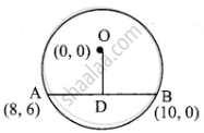 O(0, 0) is the centre of a circle whose one chord is AB, where the points A and B are (8, 6) and (10, 0) respectively. OD is the perpendicular from the centre to the chord AB. Find the coordinates of the mid-point of OD.