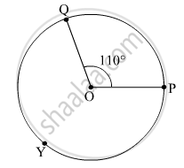 O केंद्र असलेल्या वर्तुळात लघुकंस PXQ चे माप 110° आहे, तर विशालकंस PYQ चे माप काढा.