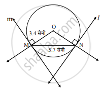 `{:(रेख "ON" ⊥ रेषा "l"), (रेख "OM" ⊥ रेषा "m"):}}` [स्पर्शिका त्रिज्येला लंब असते.]
