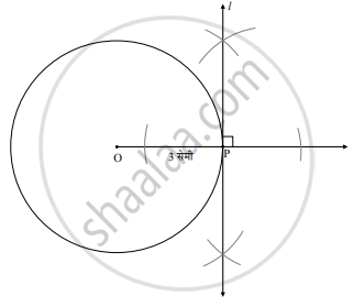 O केंद्र व त्रिज्या 3.5 सेमी असलेल्या वर्तुळाला त्यावरील P बिंदूतून स्पर्शिका काढा.