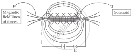 The adjacent diagram shows a small magnet placed near a solenoid AB. Current is switched on in the solenoid by pressing the key K.