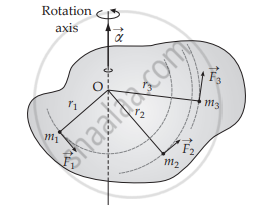 The body can be considered as made up of N particles with masses m1, m2, ..., mN situated at perpendicular distances r1, r2, ..., rN respectively from the axis of rotation. `vecα` is the same for all the particles as the body is rigid. Let `vecF_1, vecF_2, ..., vecF_N` be the external forces on the particles.
