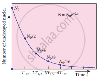 Equation (4) is called the law of radioactive decay. Here N denotes the number of undecayed nuclei present at any time t and N0 denotes the number of nuclei at initial time t = 0. Note that the number of atoms is decreasing exponentially over time. This implies that the time taken for all the radioactive nuclei to decay will be infinite. Equation (4) is plotted.
