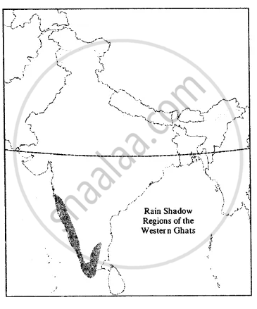 Shade in yellow the rain shadow regions of the Western Ghats.