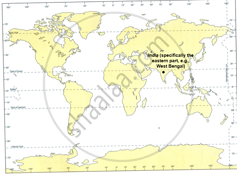 On an outline map of the world, mark one region with Monsoon type.