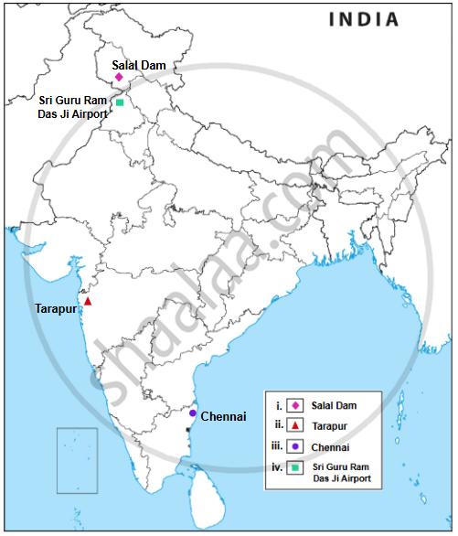 On the given outline map of India, locate and label any three of the following with suitable symbols: