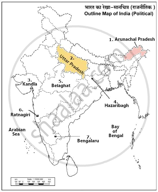 On the given political outline map of India, locate and label any five of the following seven geographical features with appropriate symbols: