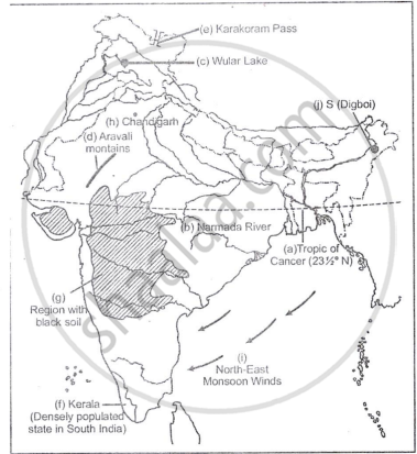 On the outline map of the Indian sub-continent provided to you at the end of this question paper: