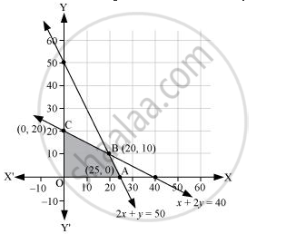 The corner points are A (25, 0), B (20, 10), O (0, 0), and C (0, 20).