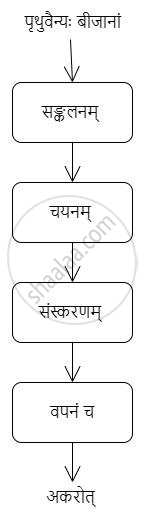 तदा पृथुभूपेन तदर्थं धनुः सज्जीकृतम्। तदा भूमिः स्त्रीरूपं धृत्वा तस्य पुरतः प्रकटिता अभवत् अवदत् च, “हे राजेनद्र! तव पिता दुःशासकः वेनराजः राजधर्मस्य पालनं नाकरोत्। तदा मया चोरलुण्ठकभयात् धनधान्यपुष्पफलानि मम उदरे निहितानि। त्वं तु प्रजाहितदक्षः नृपः। यदि त्वं प्रयत्नेन कृषिकार्यं करोषि तर्हि अहं प्रसन्ना भविष्यामि। अतः धनुः त्यज।खनित्राणि, हलान्, कुदालकान् लवित्राणि च हस्ते गृहीत्वा प्रजाजनैः सह कृषिकार्यं कुरु।” भूमातुः उपदेशं मनसि निधाय पृथुवैन्यः नदीनां मार्गम् अवरुध्य कृषिकारयार्थं जलस्य उपयोगम् अकरोत्। वृष्टिजलसञ्जयं कृत्वा जलव्यवस्थापनम् अकरोत्। भूमिम् उर्वरतमां कर्तु प्रायतत। तदनन्तरं तस्मिन् क्षेत्रे जनाः धान्यबीजानि अवपन्। स नैकेभ्यः वृक्षेभ्यः विविधप्रकारकाणां बीजानां सङ्कलनं चयनं च परिश्रमेण अकरोत्। अनन्तरं बीजानां संस्करणं कृत्वा वपनम् अकरोत्। पर्जन्यानन्तरं बीजेभ्यः अङ्कुराः उद्भूताः। |