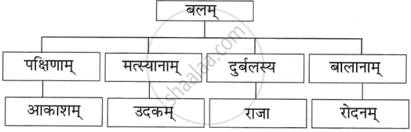 पद्यांशं पठित्वा जालरेखाचित्रं पूरयत। पक्षिणां बलम् आकाशं, मत्स्यानाम् उदकं बलम्। दुर्बलस्य बलं राजा, बालानां रोदनं बलम् || - Sanskrit (Second Language) [संस्कृत (द्वितीय भाषा)]
