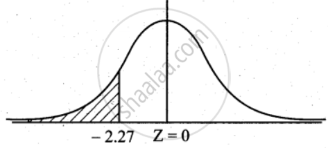 P(z < – 2.27) = P(`-oo` < z < 0) – P(– 2.27 < z < 0)
